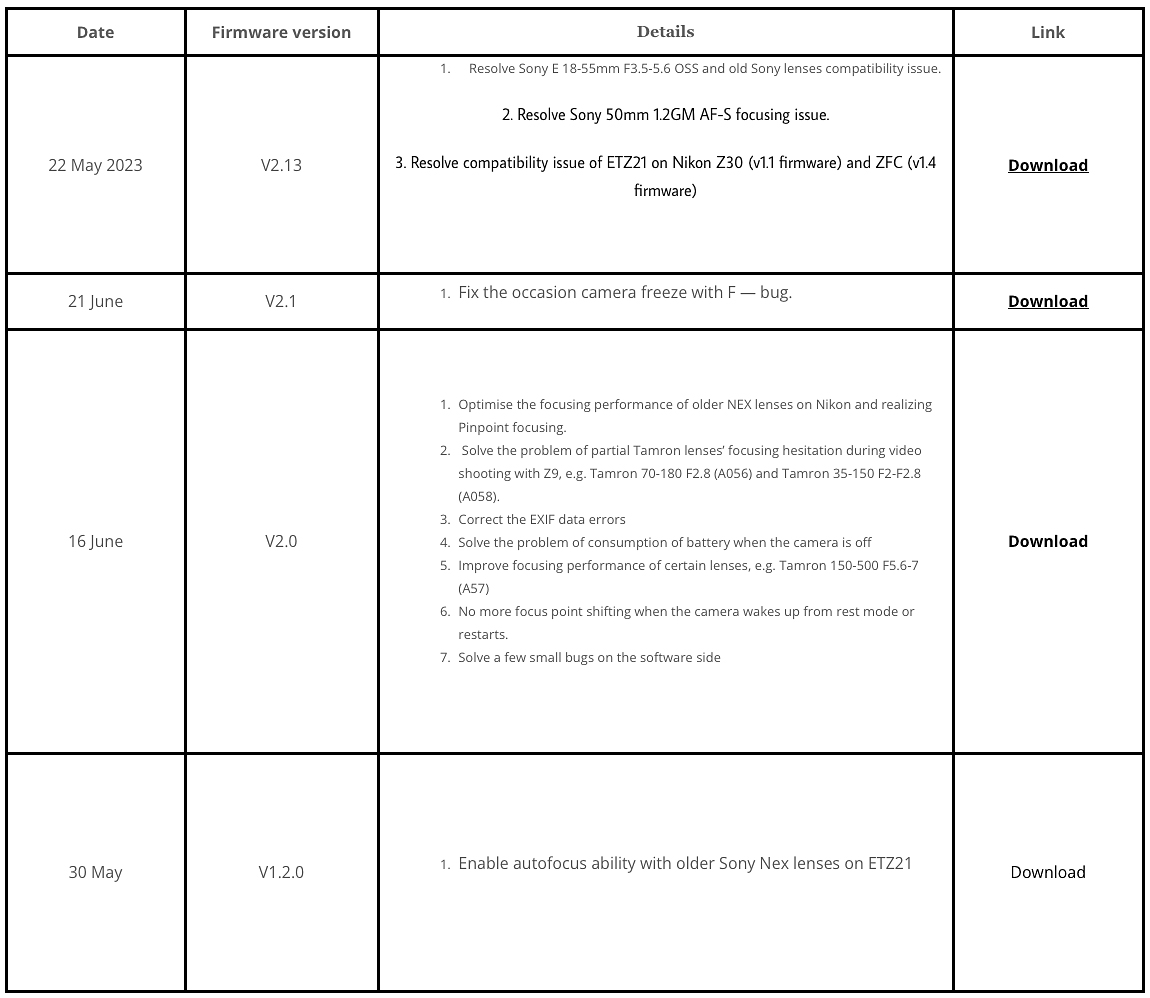제가 사용하는 메가댑 ETZ21 어댑터는 Z9에서 사용 시 배터리 광탈과 소니 네이티브 렌즈(sel50f12gm, sel2070g)를 인식하지 못하는 문제가 있어서 혹시나 하는 마음으로 펌업 후 문제가 개선됐는지 확인해 봤습니다.